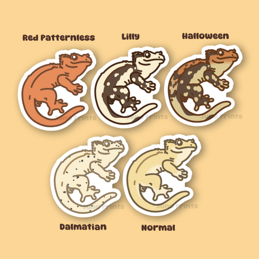 Crested Geckos - 3" Waterproof, UV-Resistant Sticker or 2" Acrylic Keychain - Frog Butt, Stumpy, Rumpy Lizard Reptile