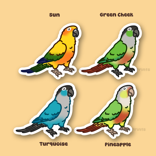 Conure Sticker - 3" Waterproof, UV-Resistant Sticker or 2" Acrylic Keychain - Sun, Green Cheek, Variants