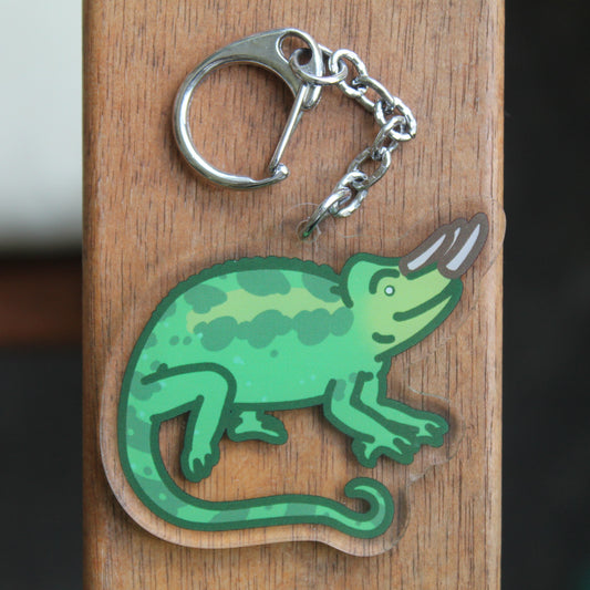 Jackson's Chameleon - 3" Waterproof, UV-Resistant Sticker or 2" Acrylic Keychain - Three-Horned, Lizard Reptile