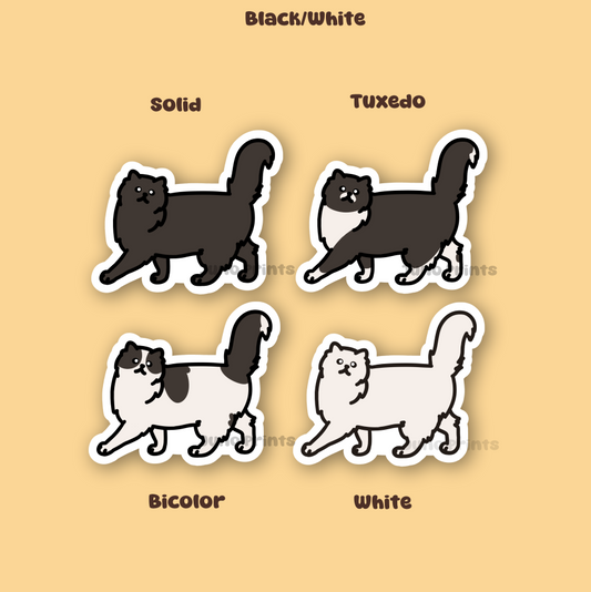 Longhair Black, White Cat - 3" Waterproof, UV-Resistant Sticker Domestic Medium Feline