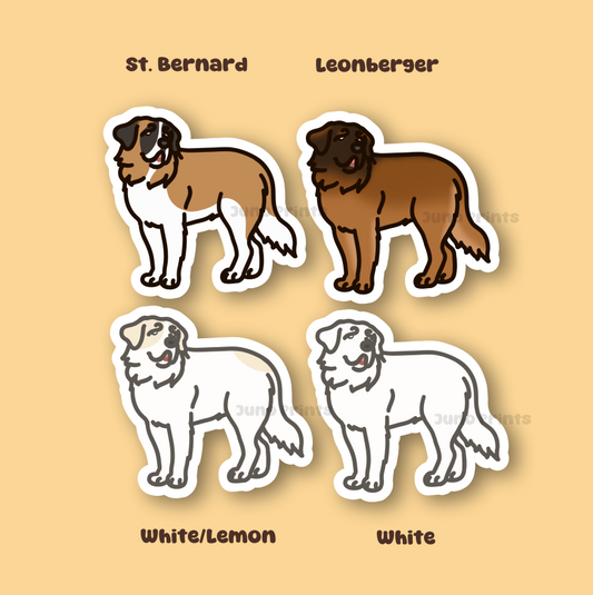 Saint Bernard, Leonberger, Big White Fluffy Dogs - 3" Dog Sticker or 2" Keychain Working