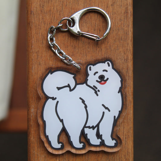 Samoyed Dog - 3" Waterproof, UV-Resistant Sticker or 2" Acrylic Keychain - Fluffy White Big Spitz Working