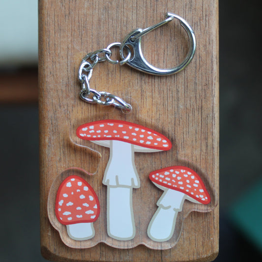 Fly Agaric, Amanita Mushroom - 3" Waterproof, UV-Resistant Sticker or 2" Acrylic Keychain - Fungi Fungus
