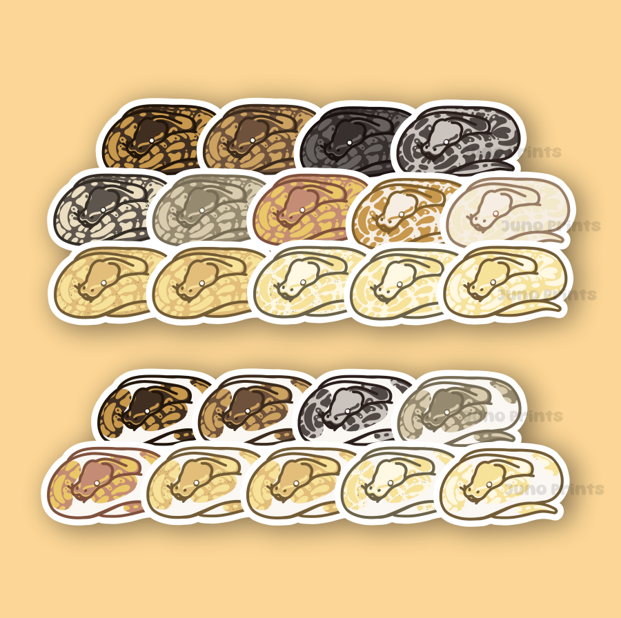 Ball Pythons - 3" Waterproof, UV-Resistant Sticker or 2" Acrylic Keychain - Normal Pattern, Color Morphs, Piebald Pied